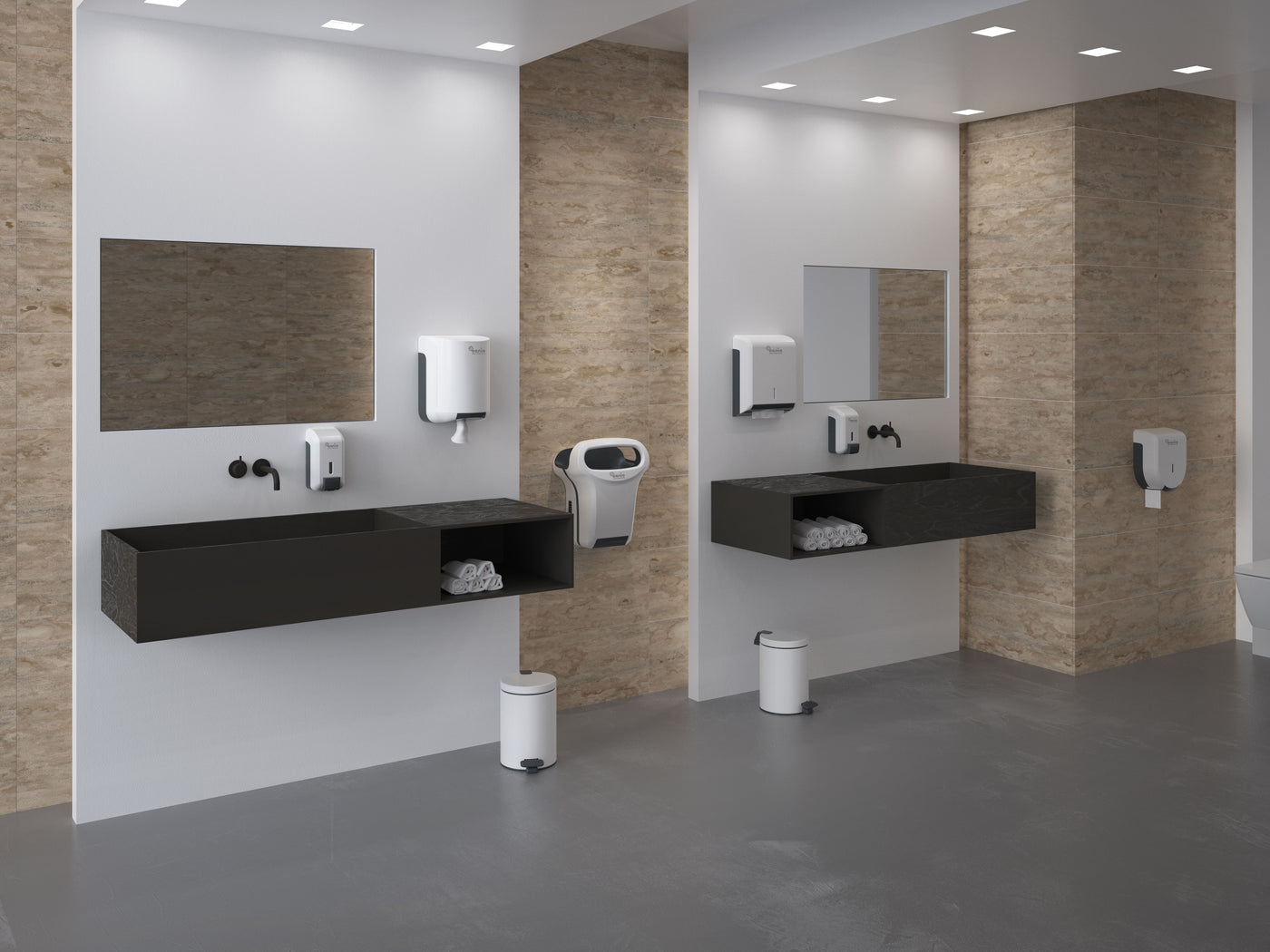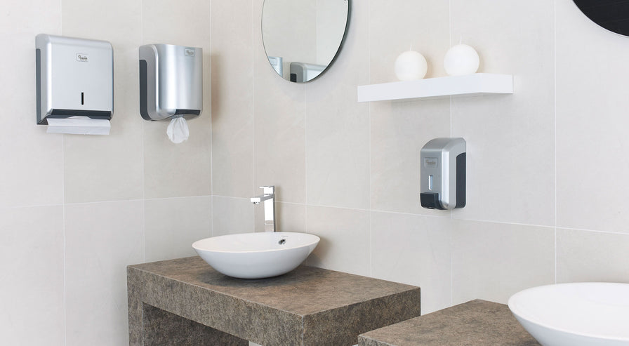 Entdecken sie die elegante Linie banio SPA silver. Dezent und schlicht gehalten. Alle Produkte aufeinander abgestimmt vom Seifenspender, Toilettenpapier-spender, Falthandtuchspender und Händetrockner.