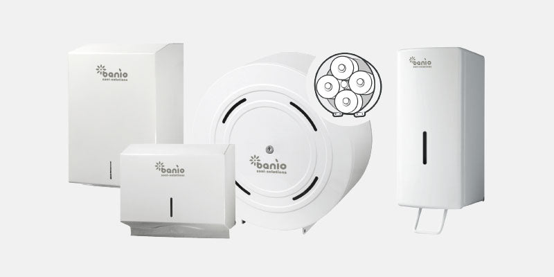 Entdecken sie die elegante Linie banio SPA silver. Dezent und schlicht gehalten. Alle Produkte aufeinander abgestimmt vom Seifenspender, Toilettenpapier-spender, Falthandtuchspender und Händetrockner.