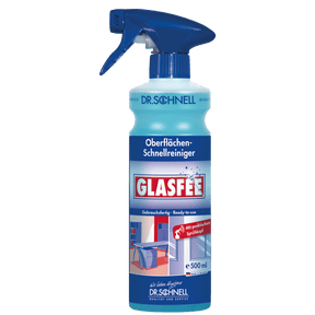 - Spray Dr. Schnell GlasFee undiluted onto the surface and then wipe with a cleaning cloth or chamois leather. Suitable for use on all water-resistant surfaces. Completely removes dirt deposits and greasy residues. No need for a second wipe.