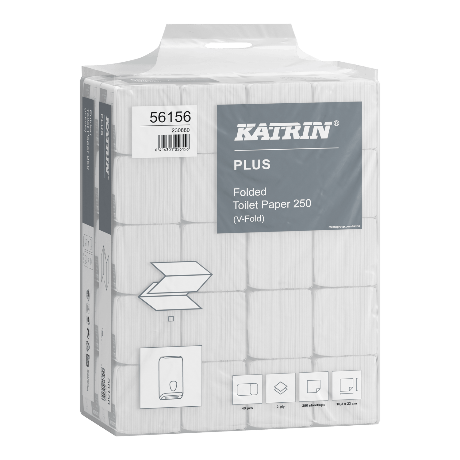 Katrin 56156 | Toilettenpapier Einzelblatt 2-lagig, Zellstoff, 250 Blatt