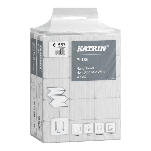 Katrin Plus Z-Falz Falthandtücher Non Stop M Wide 160 Blatt 2-lagig, Handy Pack